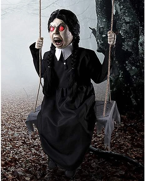 From the Tate Steinsiek Collection. Who doesn’t love an innocent little girl on a swing? Sweet little Molly loves to sing and play with friends, but she has been playing on her swing for quite some time. Don’t say we didn’t warn you… For if you move too close to young Molly, you’ll scream in horror as she bends backward to reveal a twisted face and a sinister laugh!