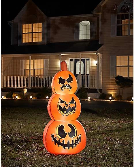 Your home décor is about to get a whole lot spookier once you add this 4 Ft Pumpkin Stack Inflatable to your Halloween display. This inflatable features a stack of three pumpkins all with different faces and is just what any home needs to get right in the holiday spirit. You’ll have one of the best décor setups in the neighborhood once you set up this pumpkin stack inflatable in front of your home.Â