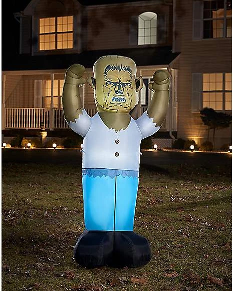 Watch out for the wolfman! This 8-foot-tall wolfman inflatable decoration will give your outdoor space a terrifying twist. This inflatable wolfman decoration features a sinister scowl, raised arms, and tattered clothing. This decoration’s light-up design casts an eerie glow around the wicked wolf. Happy howl-oween!