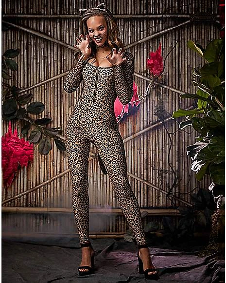 Meow! This velour catsuit will have you feeling just like a pretty little kitty! With a soft exterior, you’ll stay comfortable all day long! The attached tail, included headband and Velcro choker necklace will put the finishing touches on this feline look!