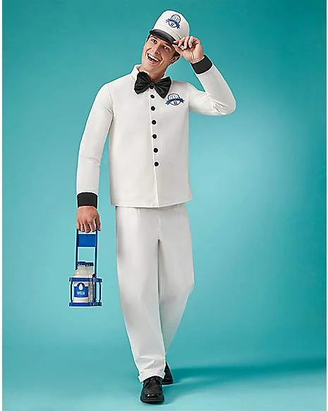 Keep the town well supplied with milk this Halloween when you deliver the goods in this Retro Milkman Costume. Everyone will be looking forward to getting their daily milk when they see you walking by in this costume that features a white buttoned shirt, matching white pants, a hat, a belt, a bowtie, and a milk basket prop. Go retro with your costume this Halloween and you can’t go wrong!