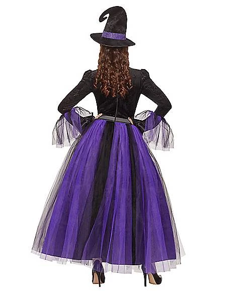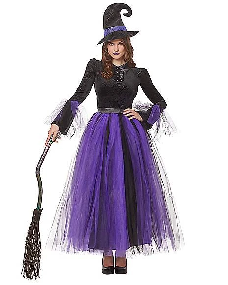 Win Halloween with this classic costume done to perfection. From our signature collection, this marvelous witch costume will have you ready for all things magic this Halloween! Cast a wicked spell in the adult witch costume deluxe coming complete with a sheer detailed purple and black witch dress and matching hat that will have you ready for all kinds of wicked fun.Â