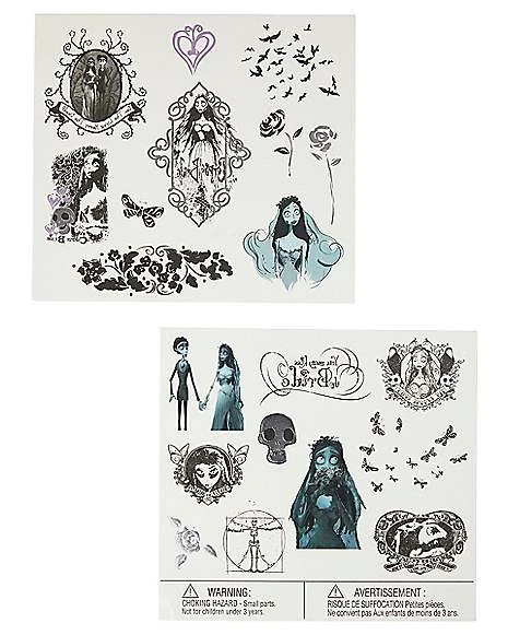 Show everyone how much you love Emily and Victor’s story when you use these official Corpse Bride temporary tattoos. These easy-to-use tattoos feature Emily in various poses, Emily and Victor, roses, birds and more images from the movie.