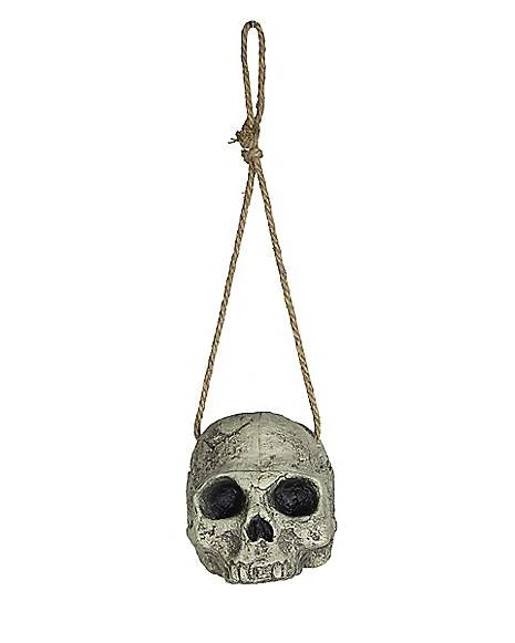Add this decrepit hanging skull to your Halloween horror scene! This hanging skull is the perfect addition to your spooky set-up!