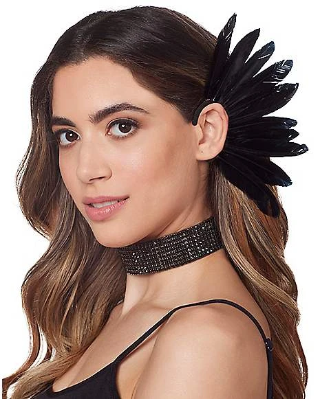 Add to your dark look with these fallen angel ear cuffs. The beautiful black feathers will complete your fallen angel look.