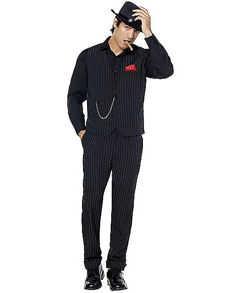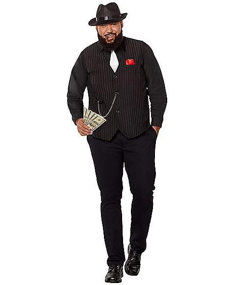 Join the hiest. Let everyone know you’re a bad guy when you strut your stuff in this pinstriped gangster vest! The attached ted pocket square and chain detail will show everyone that you mean business!