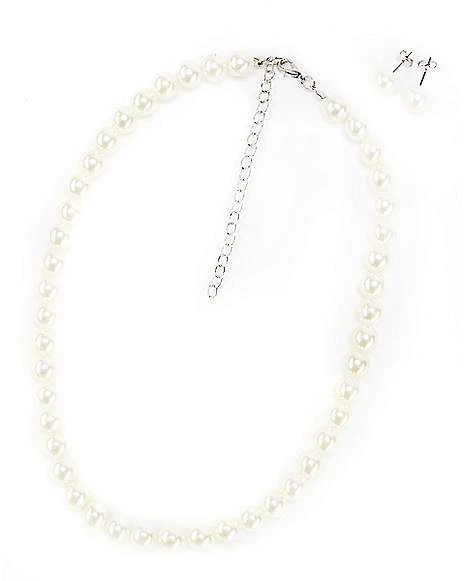 You don’t like the term “trophy wife”, but you can still look fabulous when you wear this Housewife Jewelry Set! Look like an upscale housewife when you adorn yourself with this white, pearl-like necklace and matching earrings.