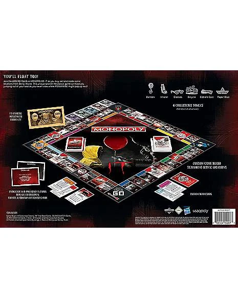 Gather your bravest friends and take a trip to Derry, Maine where Pennywise could be lurking just around the corner! Monopoly: IT is a spine-chilling take on a classic game that lets you buy, sell, and trade properties while you make your way through the scariest suburbs with the Losersβ Club. Come join the fun β youβll float, too!