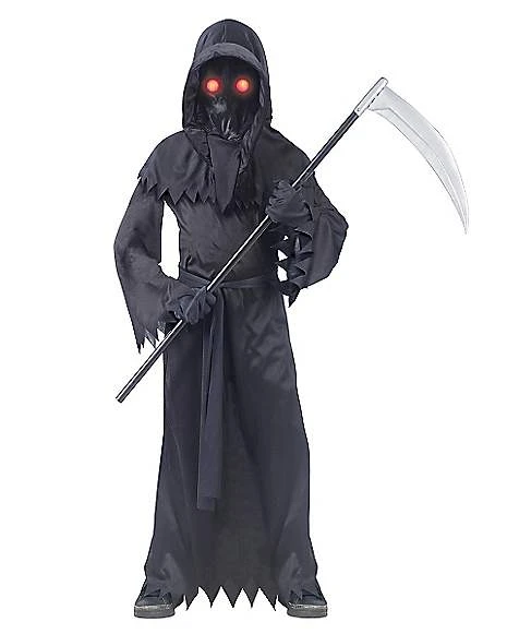 Freak out friends and family when you wear this Fade In & Out Phantom child costume. The black robe comes complete with gloves, a belt, a hood and glasses with light-up eyes feature. The whole neighborhood will be terrified!