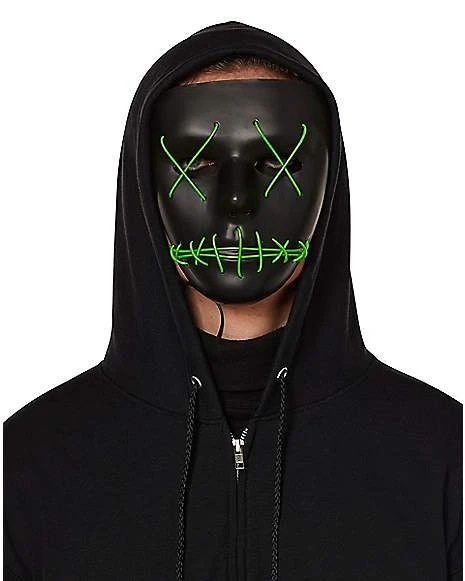 Complete your next Halloween costume with this Light Up EL Wire Green Stitched Black Half Mask on and you’ll be ready to light things up at the next costume party. This awesome mask is sure to have you sticking out in any crowd and is the perfect mask for getting your purge on.Β