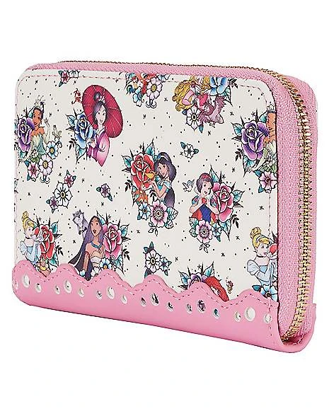 Always keep your cash and cards safely in place by getting yourself this officially licensed Princess Tattoos Zip Wallet. This fashionable wallet features prints of some of your favorite Disney princesses on it and features up to seven credit card slots for all of your cards.Â